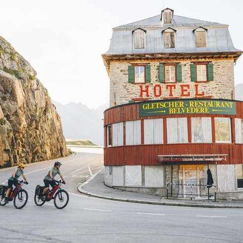 Pour sa huitième étape, le Glacier Bike Tour (GBT) part d’Andermatt avant de rejoindre la source du Rhône en Valais, en passant par le col de la Furka. Au cours de ce tronçon, vous aurez l’occasion de découvrir l’un des plus beaux villages de Suisse, ainsi que le plus petit village du pays, tandis que la montée au col de la Furka vous fera grimper près de 900 mètres de dénivelé. Au sommet, traversez la frontière cantonale pour faire vos premiers pas en Valais et, après quelques virages en descente, découvrez le glacier du Rhône, où le fleuve prend sa source, ainsi que l’emblématique hôtel Belvédère, qui n’est actuellement plus exploité. La descente offre une vue splendide sur les imposants 4000 des Alpes valaisannes et bernoises. En route vers la vallée de Goms (Conches), le paysage alpin est remplacé par des forêts et s’ouvre finalement sur une vaste étendue pittoresque. Entouré par les cols de la Furka, du Grimsel et du Nufenen, vous atteignez Ulrichen, destination de votre étape.